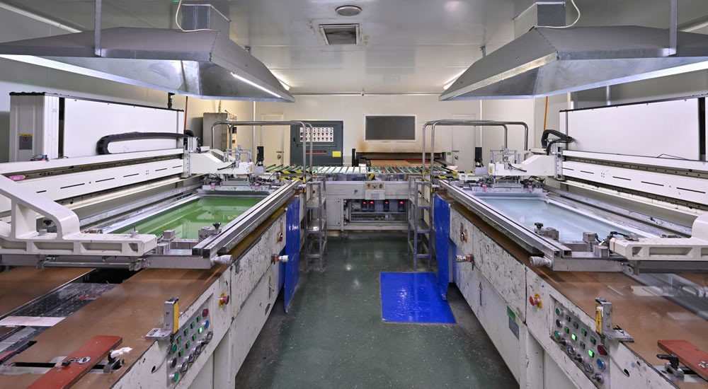 目前擁有國際領先的,超2萬平方米的玻璃深加工和自動化印刷無塵車間,依托先進的絲網印刷技術,可年產220萬平方米彩晶玻璃,給即需即供的營銷戰略提供了強有力地保障 。