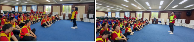 “抱團(tuán)打天下”的環(huán)節(jié),高科的小伙伴們用激情、默契、團(tuán)結(jié)、信心與堅(jiān)韌,感動(dòng)了在場(chǎng)的所有人。當(dāng)看到因?yàn)閳F(tuán)隊(duì)的違規(guī),承擔(dān)處罰的伙伴那顫抖的雙手、汗水濕透的后背,伙伴們沉默了;再一次舉起雙手,有力的撐起團(tuán)隊(duì)的伙伴,每個(gè)人默默的在用自己的力量,創(chuàng)造奇跡!因?yàn)槊總€(gè)人相信,相信自己,你將贏得勝利,創(chuàng)造奇跡!相信自己,你將超越極限,超越自己!
