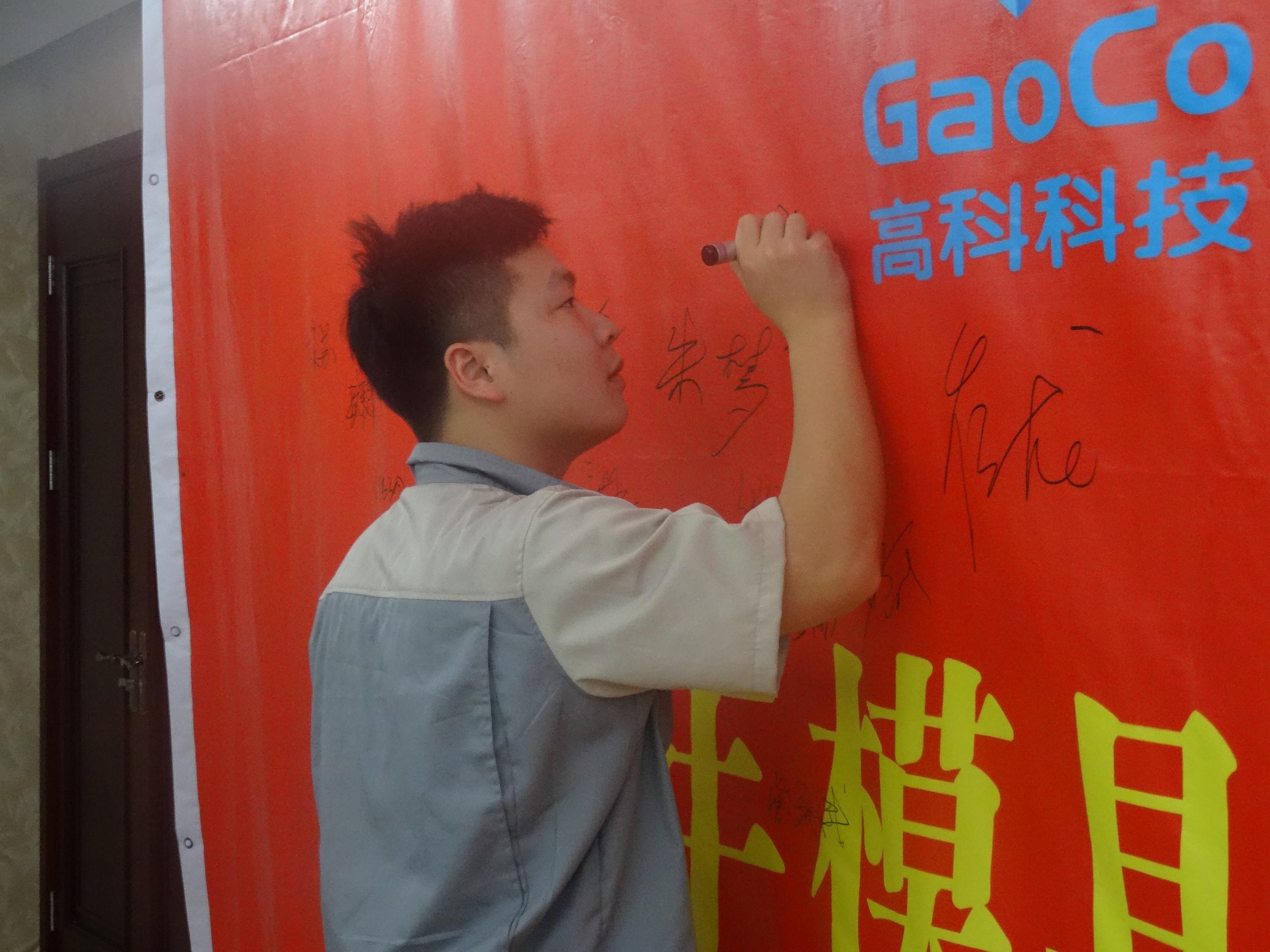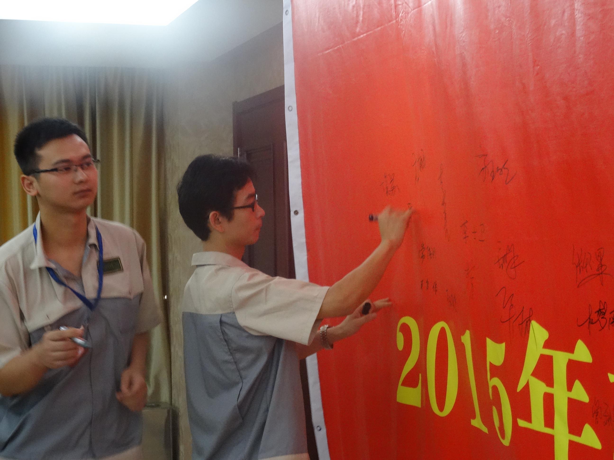 隨后模具事業部丁部長帶領全體人員進行安全生產月宣誓,并在誓師大會橫幅上簽名。