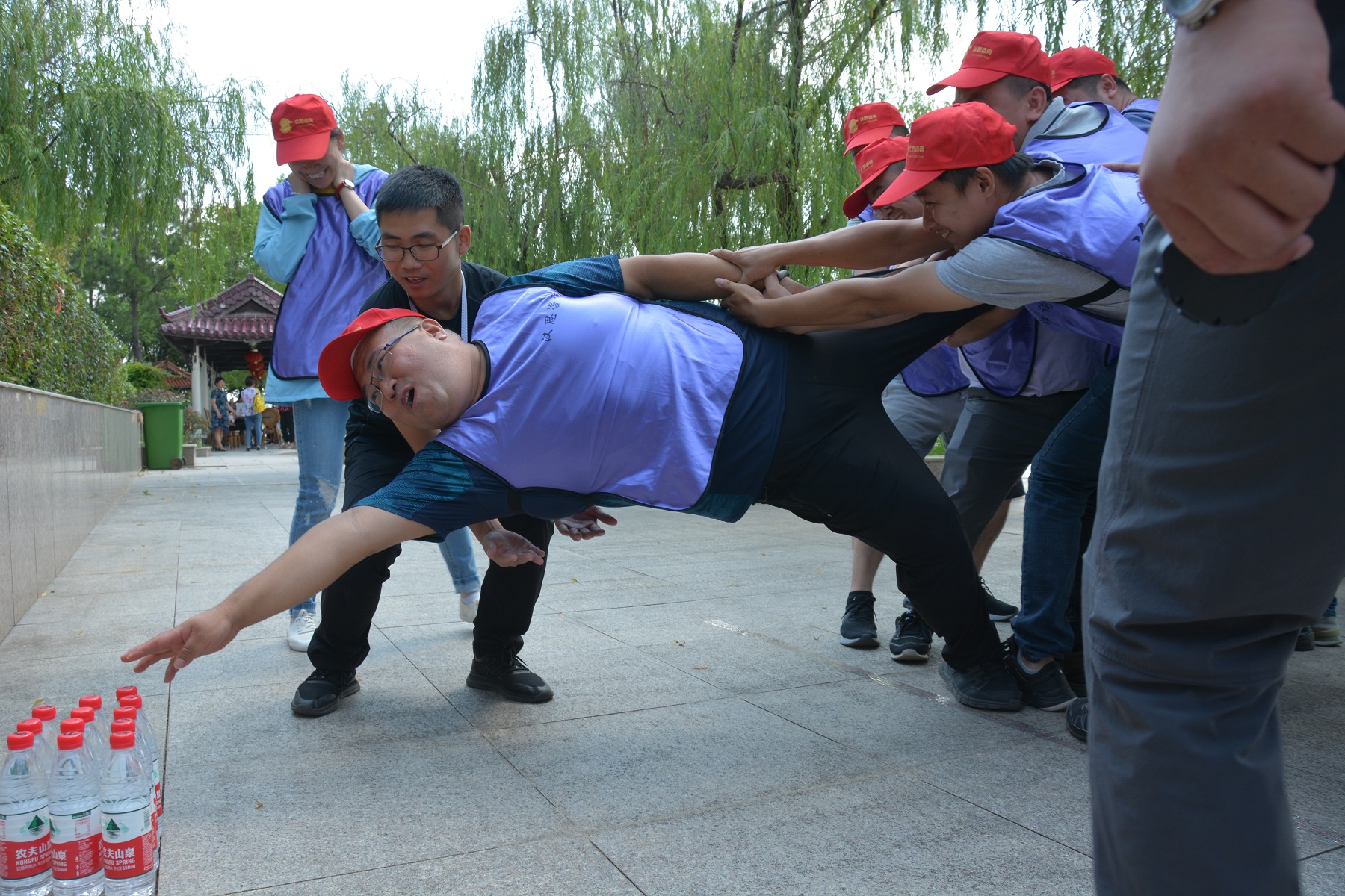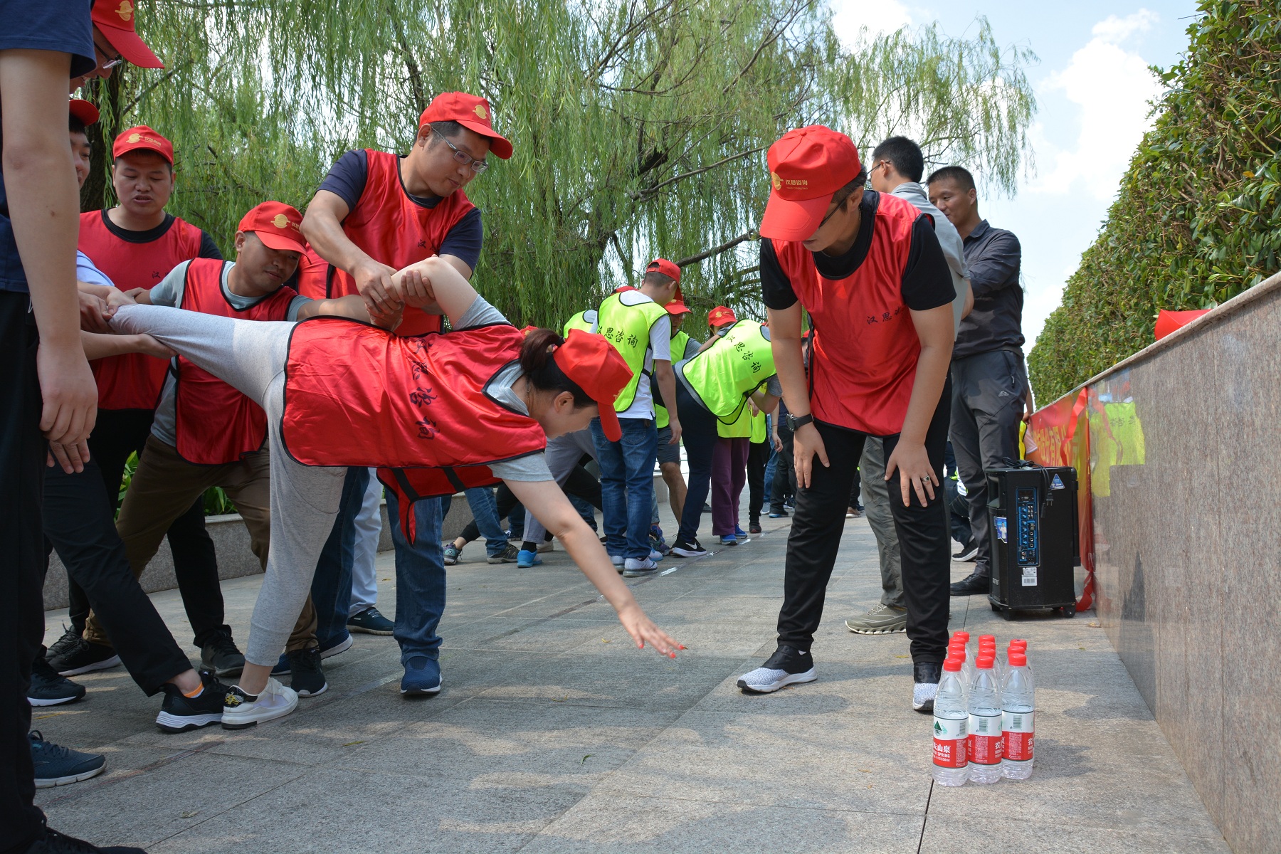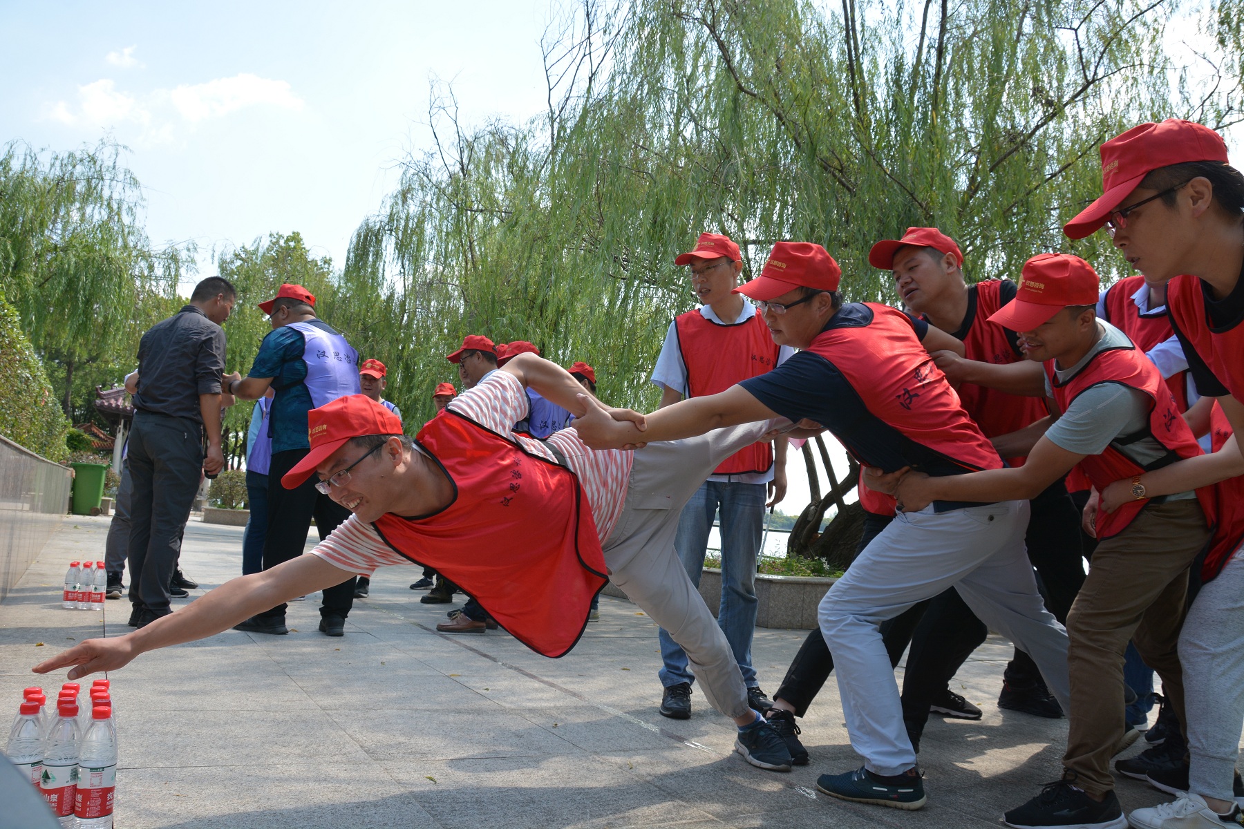 聽完活動(dòng)規(guī)則后,各組展開了激烈的討論,針對組內(nèi)成員的個(gè)人情況,進(jìn)行了排兵布陣。從最開始大家顫顫巍巍的將身體下傾去取最近的水,到最后大家互相信任的將身體拼命往前放去取最遠(yuǎn)的水,團(tuán)隊(duì)信任和歸屬感已牢固建立。活動(dòng)結(jié)束后的總結(jié)環(huán)節(jié),大家都感觸良多,紛紛舉手申請表述觀點(diǎn)。其中,目標(biāo)一致性的重要性、團(tuán)隊(duì)協(xié)作的重要性、成員之間的信任感等詞匯屢屢出現(xiàn),將團(tuán)隊(duì)績效達(dá)成的重要要素囊括無余。