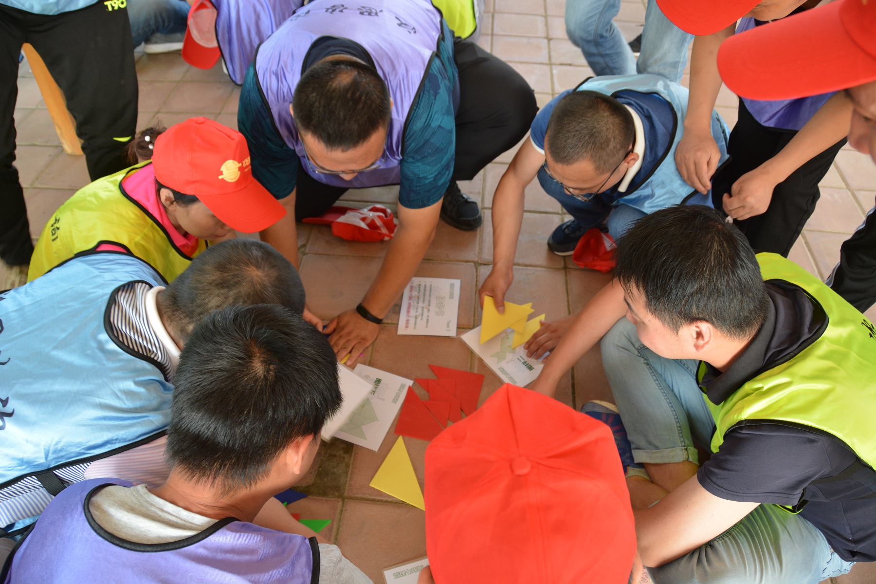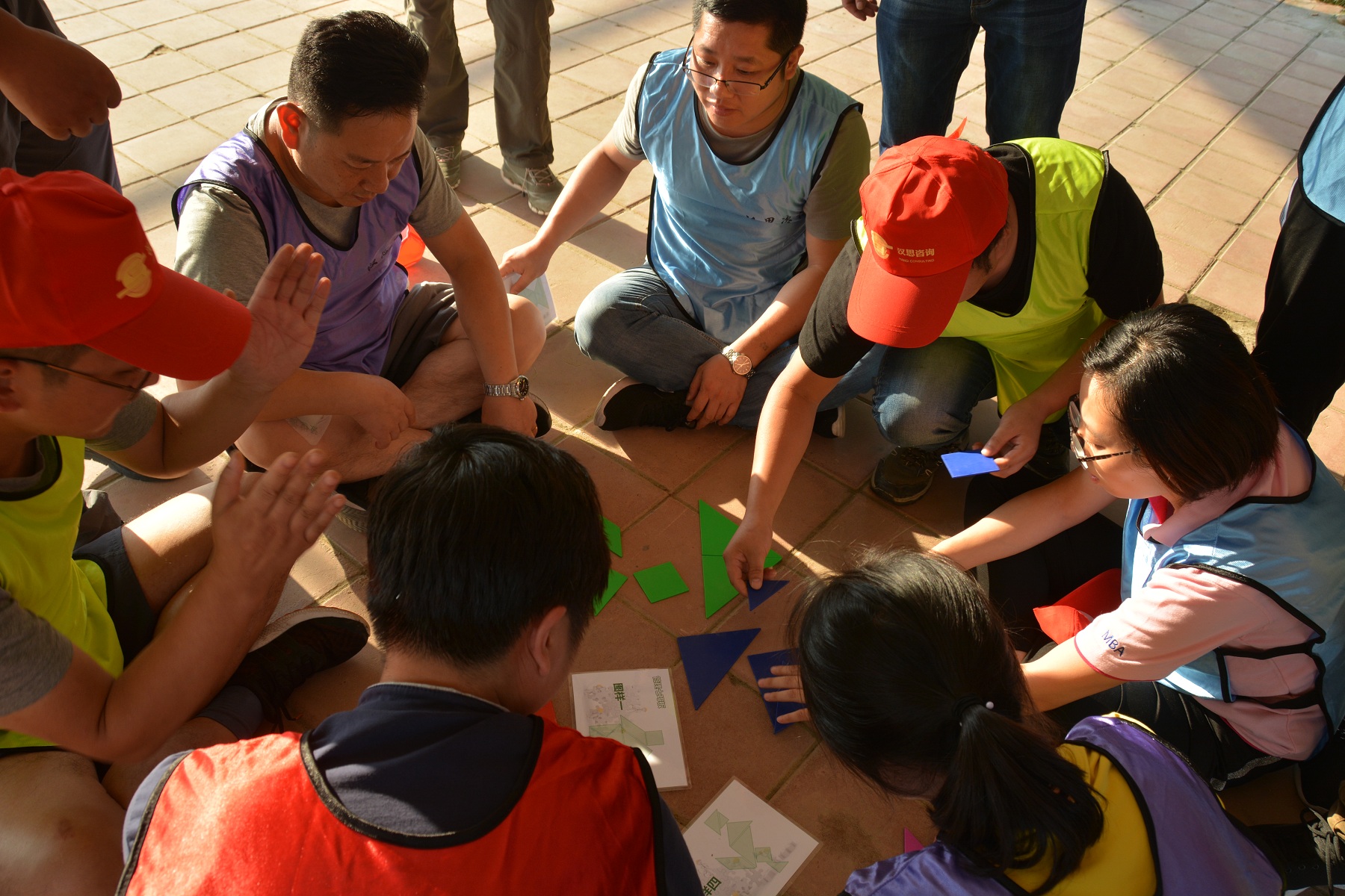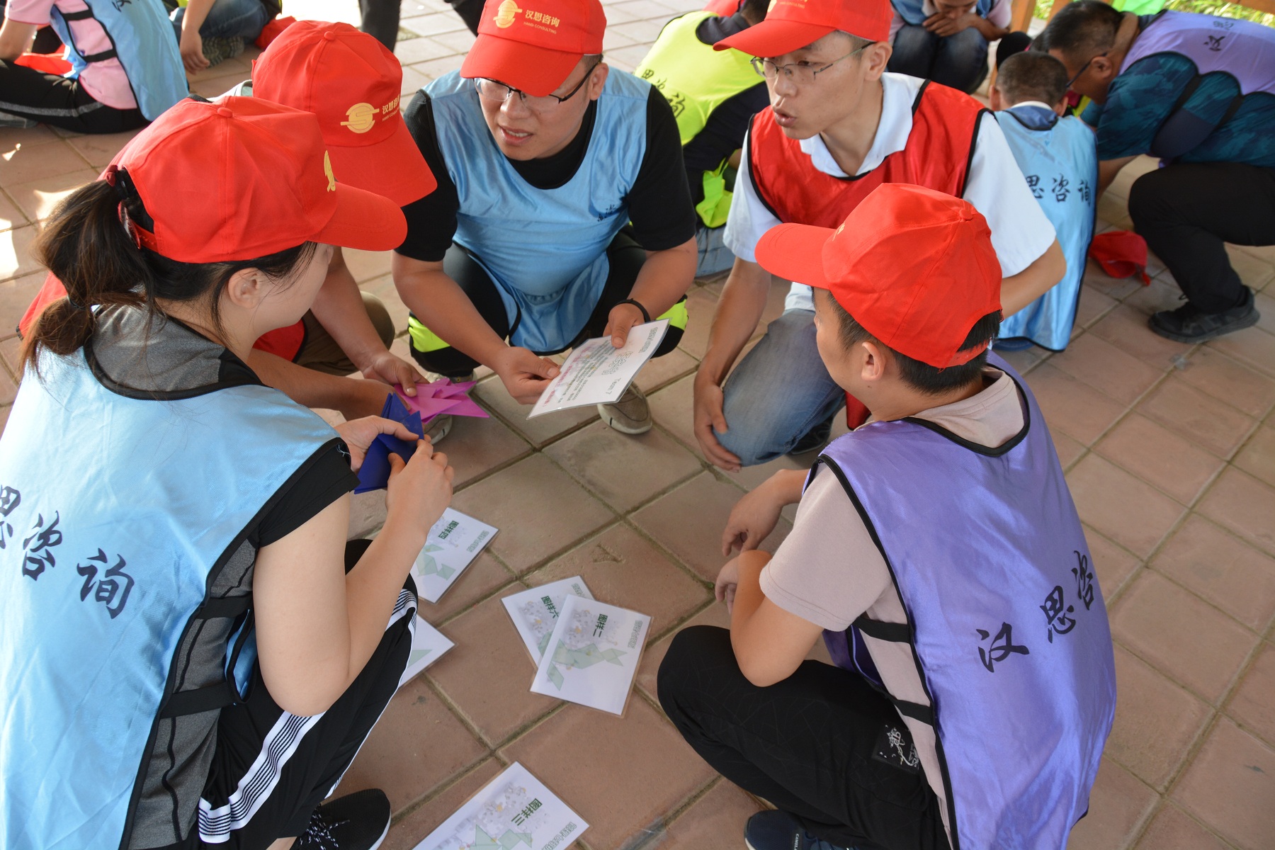 鑒于此次活動(dòng)的參與人員跨部門、跨專業(yè)、跨層級(jí),為保證所有人員的迅速融入,在隨機(jī)分成4組后,進(jìn)行了“解手環(huán)”等兩個(gè)簡單活動(dòng)的預(yù)熱,讓小組成員之間迅速的熟悉起來,為后續(xù)的團(tuán)隊(duì)組建及文化展示奠定了良好的基礎(chǔ)。4組隊(duì)伍在創(chuàng)建團(tuán)隊(duì)隊(duì)名、口號(hào)、隊(duì)標(biāo)及基本隊(duì)伍操練后,進(jìn)行了士氣昂揚(yáng)的團(tuán)隊(duì)展示。
