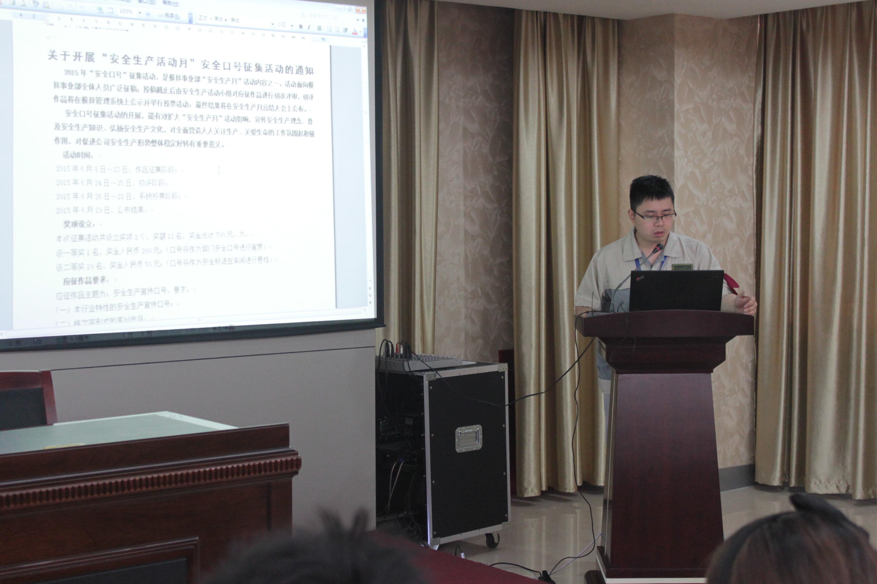 首先由生管課孟課長簡要介紹此次安全月活動主題“安全第一,預防為主”。簡單闡述了安全生產的定義以及安全生產的重要意義,通過學習安全工作領域的“海恩法則”與“墨菲定律”向全體人員說明了無數安全事故表明,都是我們不注意生產過程中的細枝末節,留有隱患,才造成的事故發生。而后公布了本次安全生產月的具體活動內容: