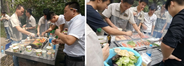 按照此次活動(dòng)的預(yù)先安排 10:00部門人員在園內(nèi)燒烤點(diǎn)集合,組織趣味燒烤大比拼。大家開始分工起來,擇菜的擇菜,配料的配料,各司其職,各組大廚紛紛閃亮登場(chǎng),一較高下,好不熱鬧……