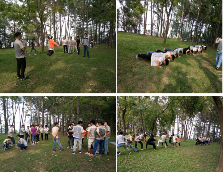 隨著溫度的上升,我們的熱情也升高起來,大家放松一切,拋開一切,都投入到了活動(dòng)中來,所以,集體不僅是團(tuán)結(jié)力量,同時(shí)也是最好的壓力釋放,一個(gè)人那只能叫發(fā)泄。這不,有人開始已經(jīng)跳動(dòng)起來了。集體跳繩是節(jié)奏感很強(qiáng)的運(yùn)動(dòng),需要大家整齊劃一,配合默契。我們進(jìn)行了A、B分組,A組由陳少鋒帶隊(duì),B組由孫勇帶隊(duì),裁判張四全。在規(guī)定時(shí)間內(nèi)哪個(gè)隊(duì)跳的多則獲勝。B組以94跳的成績(jī)贏得了本次跳繩比賽。A組則表示:重在參與,接受懲罰:俯臥撐,但我們強(qiáng)烈建議再來一局,意猶未盡啊。在A組的建議下,臨時(shí)增加了拔河比賽,各組長(zhǎng)開始給組員講解取勝方法及要點(diǎn)。最終A組取勝。